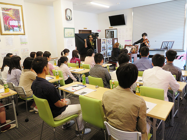 2日目は、岡本秀樹先生、岡本静子先生、黒瀬博計先生らから、地域医療のやり甲斐や楽しさ、今に至るまでのご自身の経験などをご講話いただいたほか、地元のヴァイオリン奏者にミニ演奏会を開いていただいたりと貴重な経験をさせていただきました。