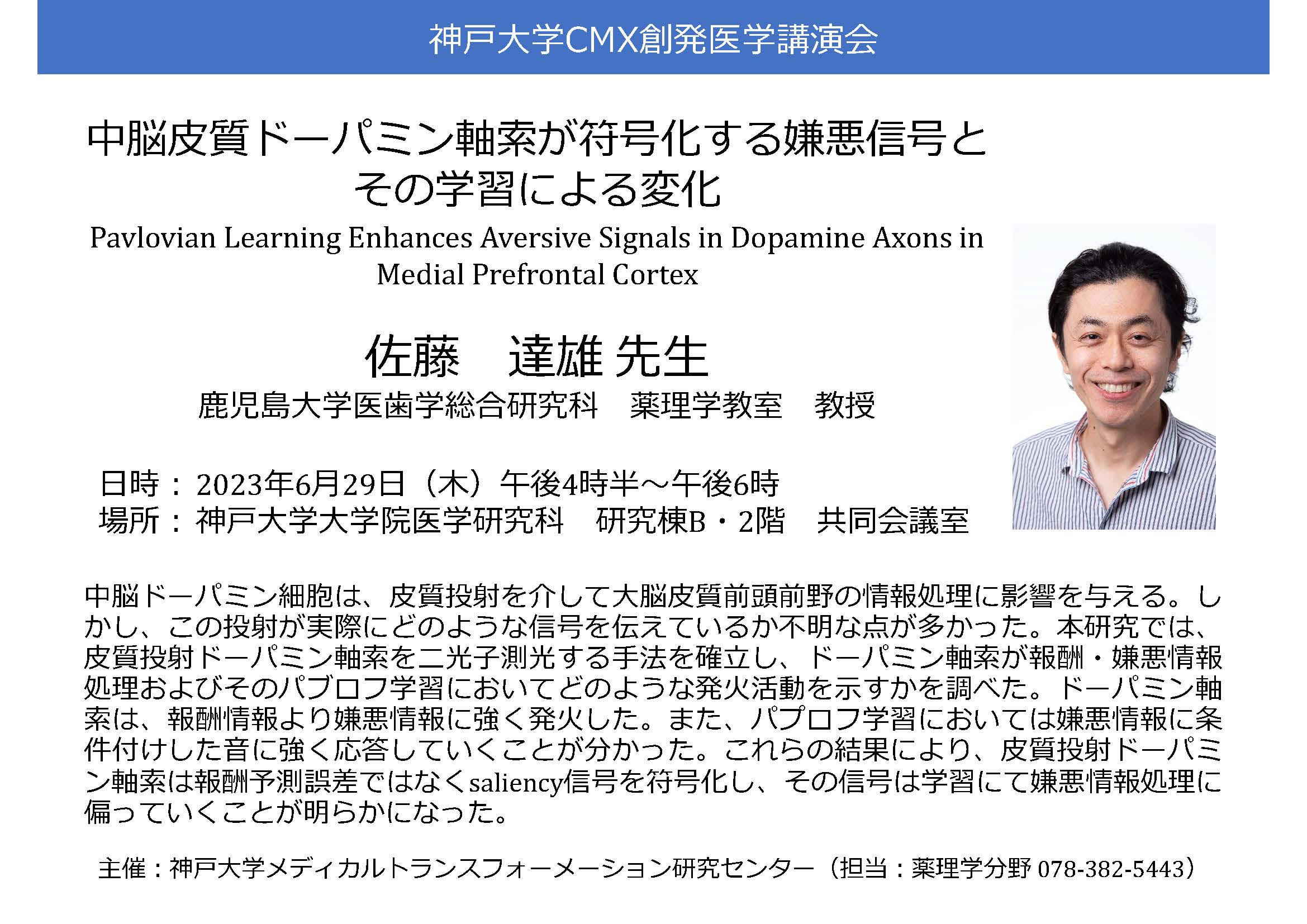 トップ 講演会 R5年度 中脳皮質ドーパミン軸索が符号化する嫌悪信号とその学習による変化 Pavlovian Learning Enhances Aversive Signals in Dopamine Axons in Medical Prefrontal Cortex