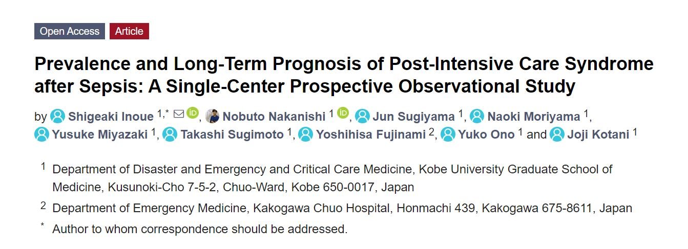 Nakanishi N, Ono Y, Miyazaki Y, Moriyama N, Fujioka K, Yamashita K, Inoue S*, Kotani J. Sepsis cause...