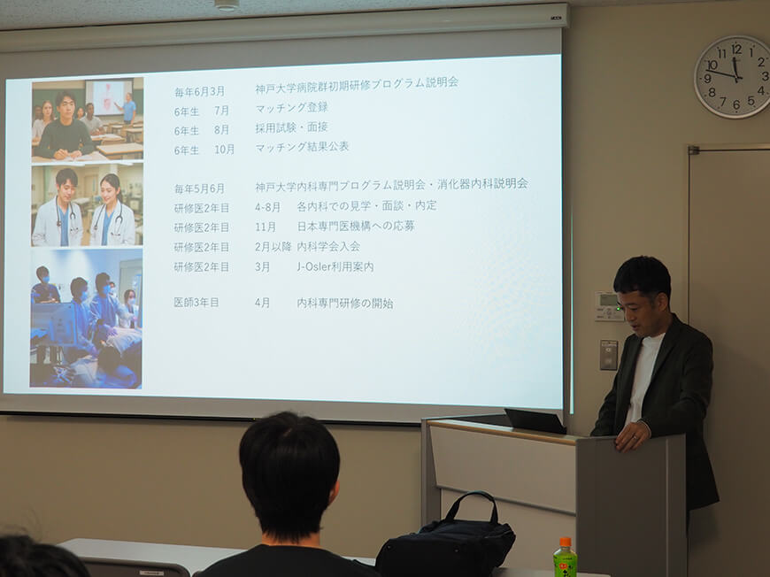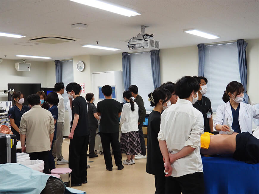 教室紹介メニュー 教授挨拶 メンバー紹介 医局行事 医局行事 2025年5月31日 消化器内科ハンズオンセミナー 当日は11名の初期研修医・学生の皆さんにご参加いただきました。 2025年度集合写真 2024年5月25日 消化器内科ハンズオンセミナー 2023年5月20日 消化器内科ハンズオンセミナー 初期研修医を対象とした内視鏡のハンズオンセミナーを開催しました。 2022年6月18日 消化器内科説明会・ハンズオン 2022年6月18日に消化器内科説明会・ハンズオンを行いました。当日は、9名の先生にご参加いただきました。 第107回日本消化器内視鏡学会近畿支部例会 2021年12月11日に児玉教授が神戸国際会議場にて第107回日本消化器内視鏡学会近畿支部例会の会長を務め、無事盛会に終了することができました。