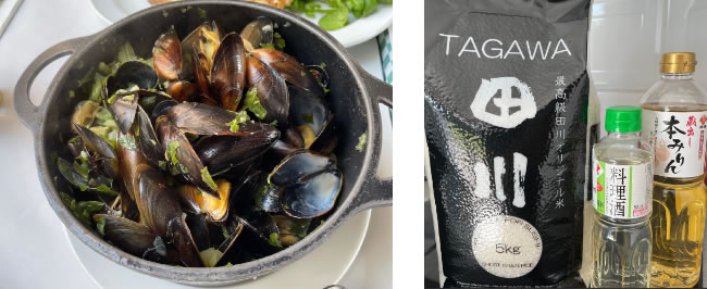 | 皆様こんにちは。こちらに来て早くも5か月が経ちました。8月はビザ手続きのため日本に一時帰国しており、9月初旬にベルギーに戻りました(ビザ申請に関しては色々苦労したため、また次回ご報告したいと思います)。10月以降のベルギーは連日、曇り・雨で、“ヨーロッパの冬”らしい天気になってきました。日照時間が短いためビタミンDの内服が推奨されています。薬局に行くと色々な種類のビタミンDが販売されており、子供用としてシロップだけでなく、チュアブル錠やグミタイプもあり、驚きました。 話は変わりますが、今回はベルギーでの“食“について書きたいと思います。こちらに来る前は、ベルギーといえばチョコレート、ワッフル、ビールというイメージでした。実際に、街中にはチョコレート専門店、ワッフル専門店が多数ありますし、ビールに関してはスーパーに数えきれない種類のビールが陳列されています。チョコレートに関しては、19世紀からチョコレート製造が盛んになったようで、カカオの生産地であるコンゴを含むアフリカの一部を植民地として所有していたことが背景にあるようです。 また、ベルギーは美食の国として知られ、ベルギーの郷土料理では「ムール貝のワイン蒸し」や「ビールで煮込んだ牛肉のシチュー」、「小エビのコロッケ」などが有名です。ムール貝は特に見た目が苦手でしたが、実際に食べてみると、とても食べやすく美味しかったです(写真左)。ただ、物価高と円安の影響で、外食をすると日本の2~3倍かかるため、気軽に外食ができないのが現状で、普段は自宅で作ることがほとんどです。 自宅での食事は、米とだし、しょうゆなどを使った日本食を作ることが多いです。幸いベルギーには駐在の日本人が多く住んでいるため、日本食材店がブリュッセル市内に数店舗あり、私たちは“田川”という日本食材店をよく利用しています。米や各種調味料、日本のお菓子、日本酒など日本のコンビニエンスストアに置いてありそうなものを買うことができます。ただし、価格は日本の2-3倍で、例えば、しょうゆが7€(約1100円)、カレールーが5€(約800円)、といった具合で高いです。米は「あきたこまち(5kgで31€)」や「こしひかり(5kgで40€)」も売っていますが、田川オリジナル米の「田川(写真右)」(イタリア産日本米)がリーズナブル(5kg15€)で味も美味しいため、毎日「田川」を日本から持ってきた炊飯器で炊いて食べています。最低限のものは日本食材店で買い、それ以外は、現地のスーパーやマルシェで買い物をしています。 スーパーやマルシェでの買い物には、最近ようやく慣れてきましたが、慣れるまでは苦労しました。こちらのスーパーで、最初戸惑ったのは、英語表記がなくフランス語、オランダ語表記のみであることや、広すぎてどこに何が売っているか見つけるのに時間がかかる、野菜が量り売りのものがある(自分で量って値段を確定する必要があります)、などでした。この中でも、語学の壁は大きく、こちらに来てからフランス語の勉強を開始しました。 今回は、ここまでです。ヨーロッパの長い暗い冬を健康に乗り切ることを目標に頑張ろうと思います。